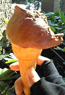 粘着性のあるアイスなので、コーンの中はからっぽだけどね。