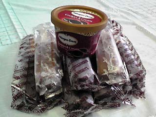 アイスの山!ダッツなんて普通買いませんよ。ダッツは買うものではありません、奢られて食べるものです!!(断言)でも今日はKAITOのお祝いという名目のため買いました。本当はもっとアイスを買いたかったんだけど、諸事情によりこんだけで。