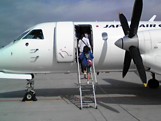 そんでもって出雲までの飛行機がちっさいの。こんな小さな飛行機に乗るの初めてだったから面白かった。多分50人も乗れないくらいかも。ちょっとした動きでも伝わりやすいので、酔いやすい人にはきついかもね。旋回するときとかワクワクだったよ(笑)