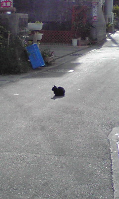 道の真ん中にどーんと座っている黒猫がいたので、お前そんな堂々と真ん中に…(笑)と近付いてみたら人慣れしているようで撫でさせてくれました。まだ成猫になりきっていない中ぐらいのサイズ。コレより少し毛の長い灰色の猫もいて可愛かったです。