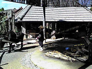 牛が石臼を引いてサトウキビを搾ったり、水車が回っているところが好きです。